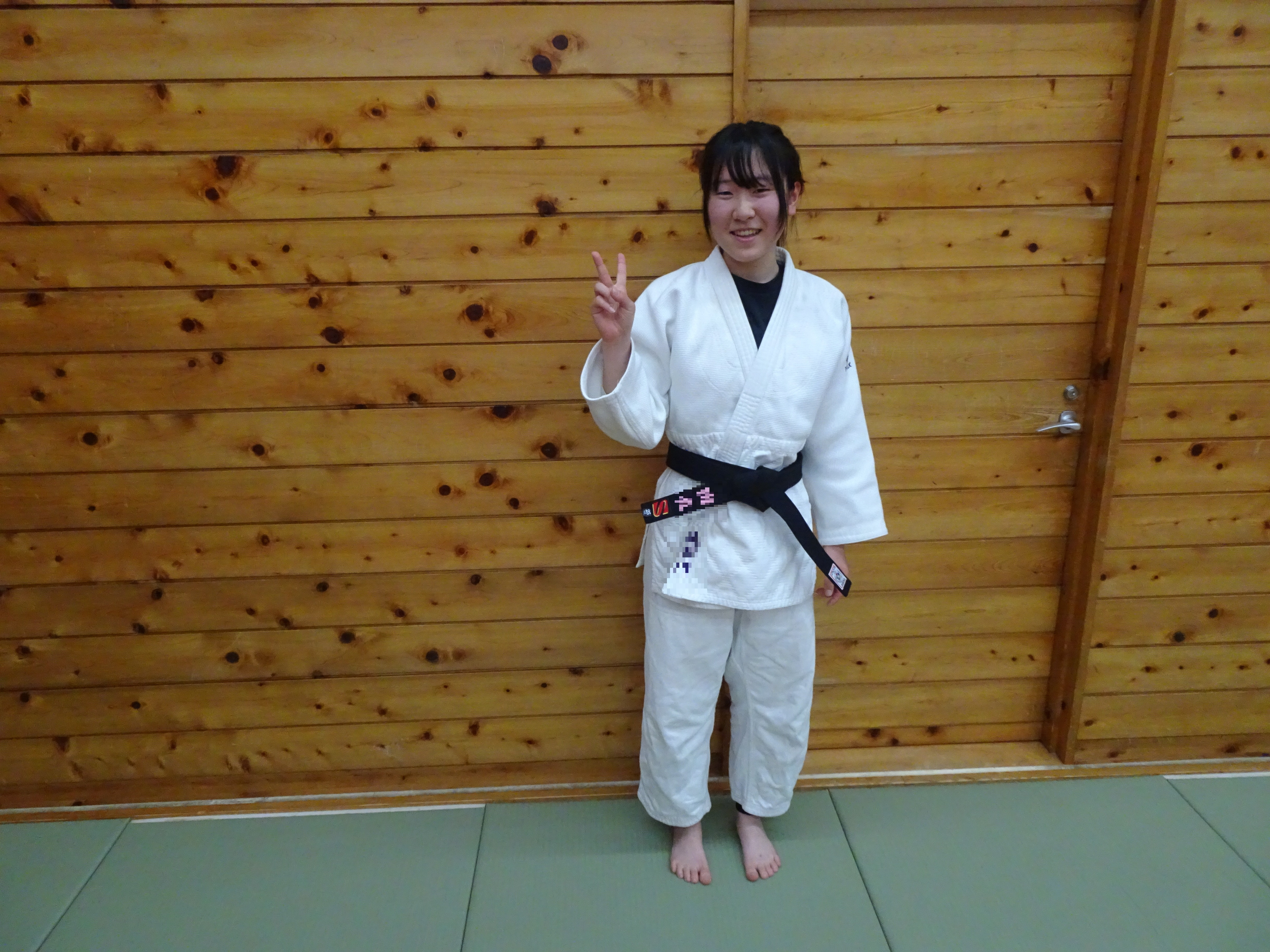黒帯になってからは、柔道に対する情熱が更に増し、高校入学時に「柔道部には入りません」と言っていた彼女は、なんと柔道部にも入部。高校3年生の時には、公式試合に出場するまでになりました。
